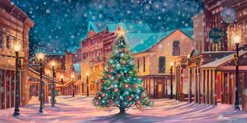 Celebrate the holiday season with the "Christmas on Mackinac" notecard by Petoskey artist Mary Bea, available at Poppins on Mackinac. This beautifully illustrated notecard features a charming Christmas tree adorned with lights on Main Street, complete with snow gently falling, capturing the festive spirit of Mackinac Island.